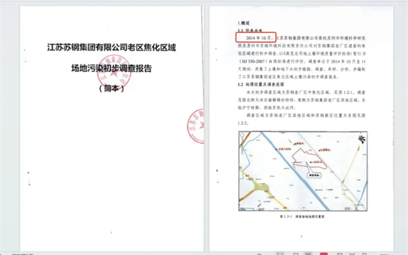 2个月后,苏钢集团委托第三方对老厂区《江苏苏钢集团有限公司老区焦化区域场地污染初步调查报告》,两家第三方机构正是此次诉讼的另外两位被告:苏州市环境科学研究所、苏州市苏城环境科技有限责任公司。