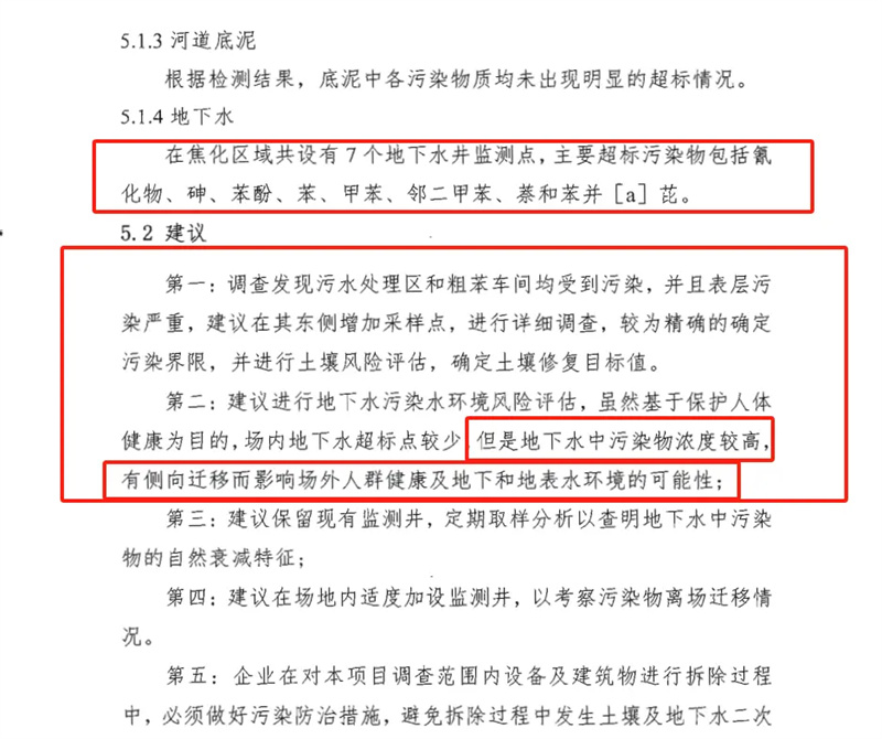 这份初步调查报告提示:“表层污染严重、地下水污染物浓度较高、有侧向迁移而影响场外人群健康的可能性。”