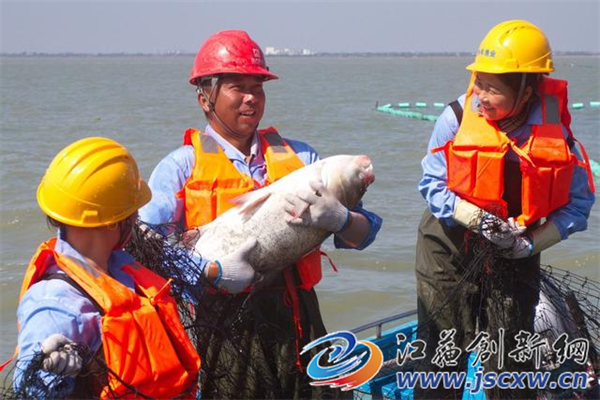 江苏余年农林生态发展有限公司总经理顾晓明介绍,近年来,余年农林公司始终围绕“环境生态恢复、沿湖乡村振兴、渔业高质量发展”三大主题,坚持走生态效益、社会效益和经济效益现代渔业融合发展新路子。自2020年下半年至今,公司已先后投入近7500万元,建设苗种基地约600亩、湖区栏隔等基础设施近30km,以及视频监控系统、水质监测系统、智慧渔业大数据管理平台等配套设施。其中已累计投入820余万元苗种资金,投放“净水型”鱼类鲢鳙苗种600多万尾。经科研支撑单位江苏省淡水水产研究所调查表明,经过近两年的生长,5万亩的大水面生态增殖渔业试验区已有约4300吨的鲢鳙可捕增殖渔业资源。同时,在试验区建设和管理过程中,公司还吸纳了31名退养退捕渔民为正式员工,为周边退养退捕渔民间接提供就业岗位100余个。