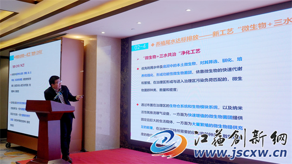 南京万瑞环境科技有限公司总工程师魏锋报告的题目是“养殖尾水达标排放浅谈及尾水治理工艺探讨”。魏锋在报告中介绍了污染负荷的排放量是如何控制的,并通过工艺流程、净化效果评估、应用案例等方面的对比,验证了新工艺“微生物+三水共治”的治理方法比传统养殖尾水治理工艺更具优势,其具有环境适应性强、净化水体速度快效率高、去污针对性强效果好、环境友好型等。