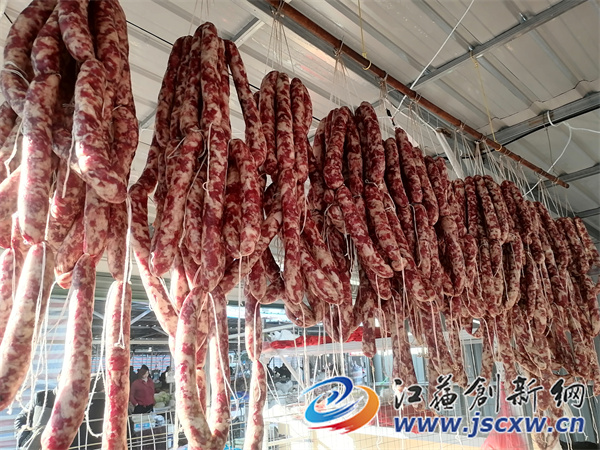 江苏创新网讯 镇江宝堰有一对小夫妻每天为村民灌香肠1000斤,销售20多头猪肉,卖咸腊肉500多斤,他们忙翻了!