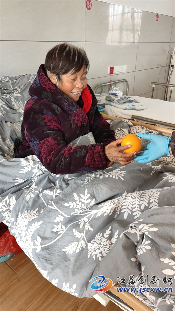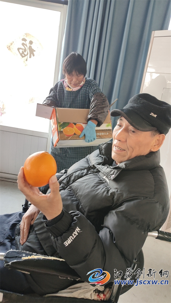 为民养老院负责人偶冬梅告诉记者,刚刚邮寄来几箱赣南脐橙的爱心人士叫蒋发二,也是丹阳市延陵镇人,他与入住在这里的“母亲”没有直接血缘关系,因为这位母亲的真正身份是姑姑,姑姑年轻时没有生养孩子,所以就按农村风俗从嫂子这里过继了蒋发二当儿子,但是姑姑对这个继儿十分疼爱,将蒋发二小拉扯大,没有任何怨言,从此蒋发二有了两个母亲,蒋发二知恩图报,成年后将两个母亲一样孝顺,成家后又多了岳父岳母一起孝顺。11年前,亲生母亲去世,蒋发二悲痛欲绝,但他对后来的姑姑(即母亲)马小妹更加孝顺体贴。后因工作需要离开母亲到北京,离家之前蒋发二多方打听,最后他打听到大吕村为民养老院是一个不错的选择,为此,蒋发二先将母亲送到这里试住一段时间,试住后母亲非常满意,但蒋发二仍然怀有不舍的心情对养老院的负责人千叮咛万嘱咐后才到北京工作,即使不天天在母亲身边,但是蒋发二只要有空都会用手机微信联系养老院内母亲。前几天,蒋发二出差到江西,得知那里的“赣南脐橙”闻名遐迩,蒋发二就赶紧选购了几箱橙子快递到丹阳大吕为民养老院,让母亲和众老人尝尝鲜。
