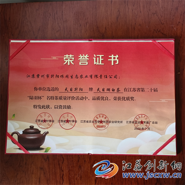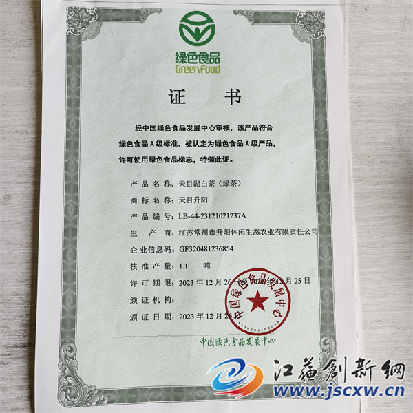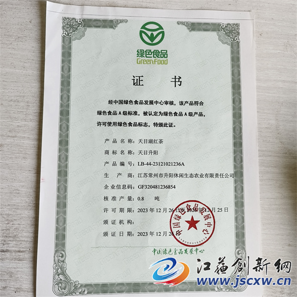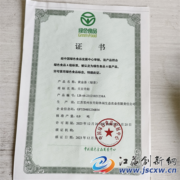 江苏创新网讯 近日,江苏常州市升阳休闲生态农业有限责任公司喜事连连,其选送的“天目升阳”牌黄金茶、白茶和红茶获得江苏茅山茶海斗茶赛银汤奖后,又被中国绿色食品发展中心认定为“绿色食品”。知情人都说,这是该公司总经理连升阳坚持内抓品质外抓管理结出的硕果。