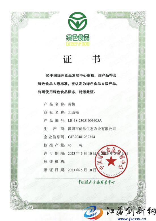 一是商品化采用分等分级、统一包装、标识,销售的产品符合《绿色食品 鲜桃》(NY/T 424-2000),通过绿色食品认证;二是注册商标“北山福”、“曹山蜜”商标,产品100%统一销售;三是制度齐全,有必备的检测设备,专人负责,同时委托专业的检测机构对产品进行检测,台账资料齐全,有专人管理,能做到全程质量追溯。