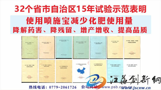 从2008年开始,委托农业农村部全国农业技术推广服务中心和耕地质量监测保护中心连续15年,安排在31个省(市、自治区)的农技、土肥、推广和植保单位,并与中国农业大学、华中农业大学、湖南农业大学、福建农林大学和广西大学等15个科研院所合作,就喷施宝有机水溶肥系列产品开展试验示范,试验作物多达46种,累计推广应用面积超过2.35亿亩。应用结果表明,喷施宝系列产品具有用量少、投入产出比高,产品无毒、无激素、无残留、无污染,使用后促进作物增产增收、降低农药残留、修复土壤和大幅减少化肥使用量的显著效果。