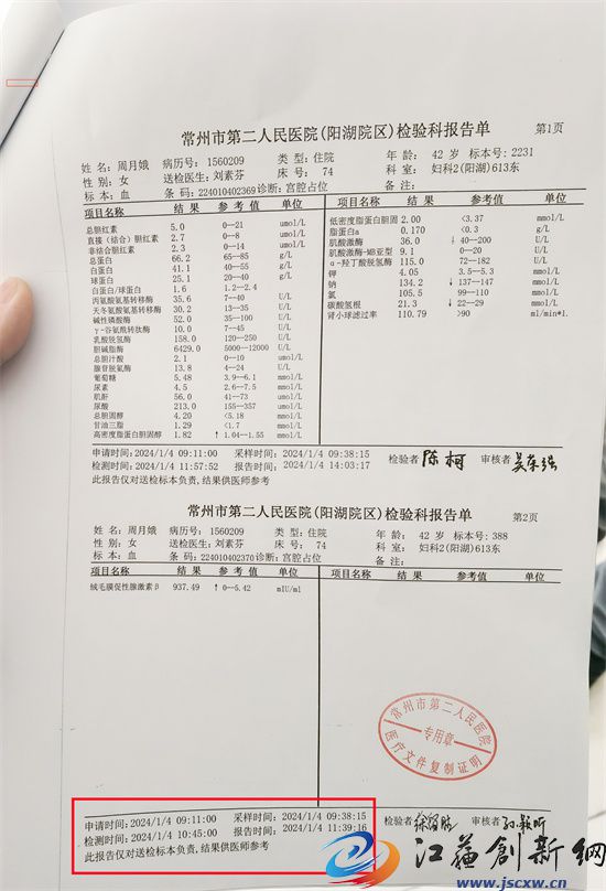 直到1月9日晚上,周女士才接到常州二院阳湖院区医生打来的电话,告诉说抽血检验是怀孕的。这让一个本来就需要特别关心和呵护的备孕做母亲的周女士心理顷刻崩溃,当时就无法控制大哭起来......