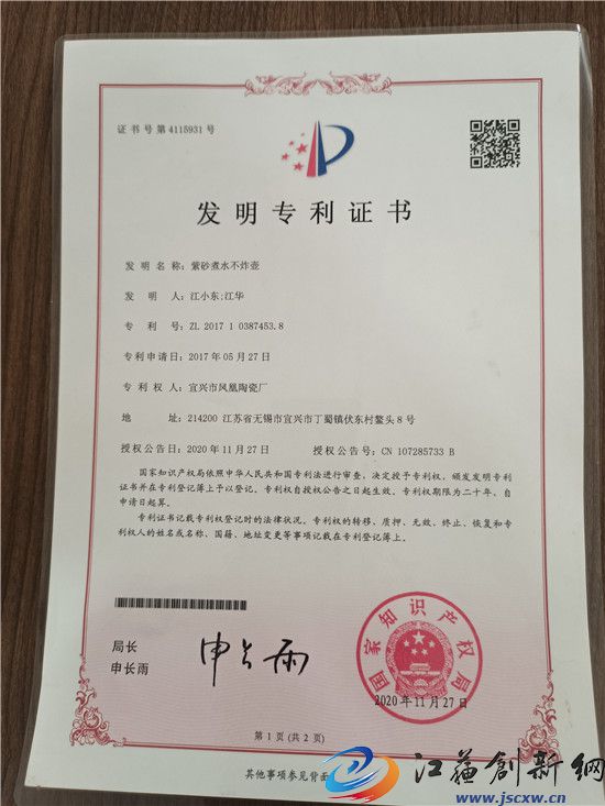 “一把沙壶手中间,低头可见水中天”。在受到业界不断认可和好评的过程中,江小东的努力和付出也让中华传统紫砂壶工艺走向世界,如今江氏紫砂壶已经走出国门,在美国、韩国、日本等地都能见到“江氏养身壶”的身影。制好壶,喝好水,讲好紫砂故事,匠人江小东用一生豪情书写玉壶冰心,用匠人创新精神传承中华紫砂精粹!(图文/毕庆元 杨洽)