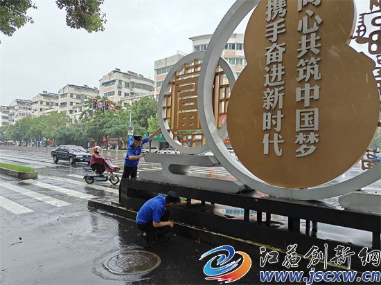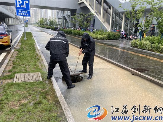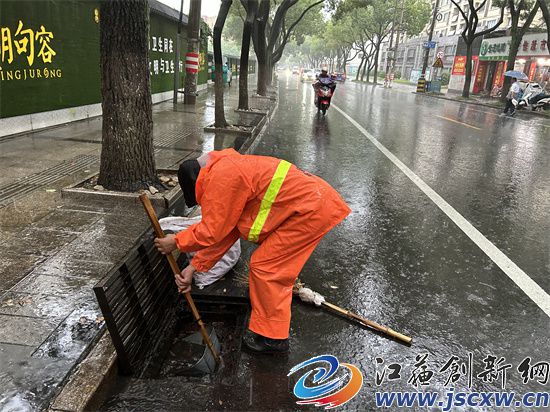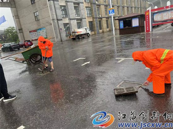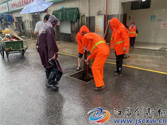 一大早,城市管理综合行政执法大队立即派出100多名应急队员冒雨出动,仔细做好小区地库、公园广场、地下停车场、菜场等低洼易涝地区的防守管控,迅速清理堵塞道路下水道及雨箅的杂物,确保排水通畅。