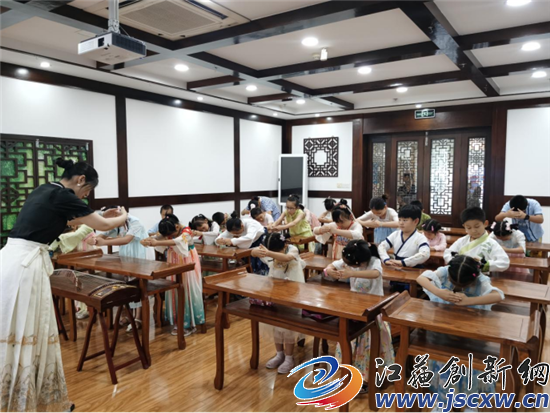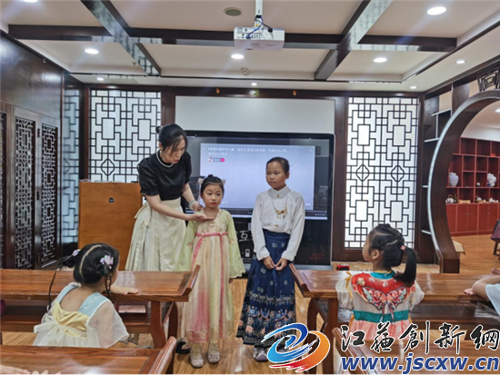 江苏创新网讯 为弘扬民族传统文化,传承国学经典,丰富孩子们的暑期生活,增强他们对优秀传统文化的认同感和自豪感,近日,句容市图书馆成功举办了2024年第四期国学讲座——《汉服礼仪》,活动邀请了镇江市文化指导师韩利老师作为主讲嘉宾。