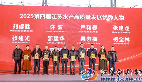 10人获“2025第四届江苏水产高质量发展优秀人物”,分别为:刘虞胜(溧阳市社渚刘志强渔需物资经营部)、许波(新沂市康安生态农业有限公司)、严和春(句容市郭庄镇春涛水产养殖场)、张建龙(常熟市金唐市水产品有限公司)、张建光(江苏大仁水产良种有限公司)、邵建华(建湖九龙口大闸蟹有限公司)、杲素梅(宿迁蟹圣水产养殖合作联社)、柯全林(溧阳市南渡全林家庭农场)、高强(扬州高邮湖强盛渔业发展有限公司)、傅倩倩(盱眙傅氏大闸蟹经营部)。