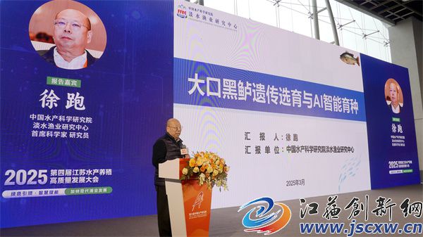 大会邀请了中国水产科学研究院淡水渔业研究中心首席科学家 徐跑研究员,作了题为“大口黑鲈遗传育种与 AI 智能育种”专题报告;江苏省淡水水产研究所许志强研究员的报告阐述了“江苏小龙虾产业发展现状与苗种繁育技术”;江苏苏智云蟹科技有限公司董事长李宝亚以“苏智金蟹+AI ”为题,报告了江苏水产品营销和品牌打造,引进“AI”等人工智能的可行性和必要性;江苏世昌农牧集团董事长袁珍虎系统在报告中,介绍了“水产投入品与健康养殖”的实践探索和新模式。