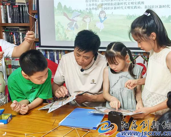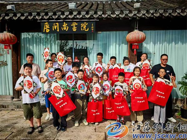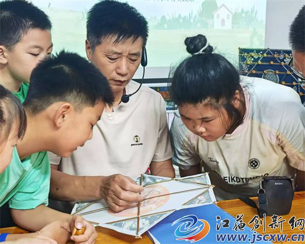 江苏创新网讯 7月29日下午,南通市崇川区唐闸镇街道新园社区板鹞风筝协会副会长、南通市非遗风筝传承人胡智,走进唐闸古镇唐闸尚书院举办“和板鹞风筝一起’趣’传承”非遗技艺课,26名暑期莘莘学子参加活动。