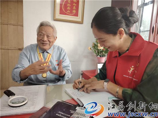 江苏创新网讯 8月5日上午,南通市通州区平潮镇吉坝乡连爱心协会的志愿者们,走进崇川区易家桥新村,看望慰问100岁高龄的抗战老兵许胜,在聆听烽火故事中重温峥嵘岁月,于交流互动间接续初心力量。