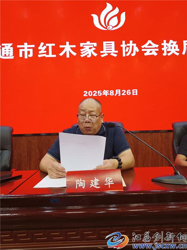 江苏创新网讯 8月26日下午,南通市红木家具协会在南通职业大学报告厅举行换届大会,选举产生第三届理事会领导班子。市工信局党组副书记、副局长储育新,市民政局党组成员、副局长肖四军应邀出席会议。