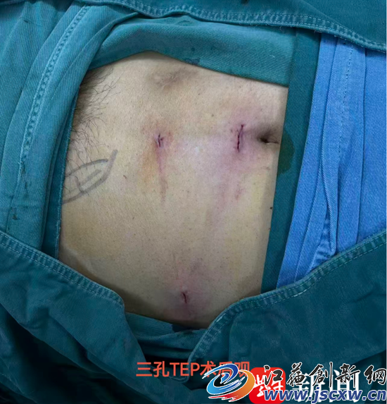 扬子晚报网3月4日讯(通讯员 王永 宋亚君 记者 姜天圣)近日,句容市人民医院普外科成功为一名腹股沟疝患者实施单孔腹腔镜疝修补术(TEP),仅通过肚脐一处隐蔽小切口便解决了患者多年的病痛困扰。从传统 “三孔” 到前沿 “一孔”,不仅实现了手术切口数量的减少,更标志着该院普外科在疝外科微创治疗领域的技术内涵与医疗服务品质实现跨越式提升。