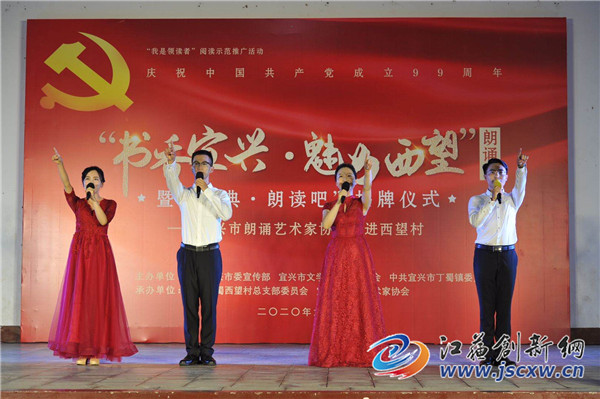 此活动由中共宜兴市委宣传部、宜兴市文联、中共宜兴市丁蜀镇委员会主办, 中共丁蜀西望村总支部委员会、宜兴市朗诵艺术家协会承办。市委宣传部副部长徐早其、市文联主席夏侯岭、市朗协主席杨阳和西望村党总支书记范泽锋为“经典·朗读吧”揭牌。
