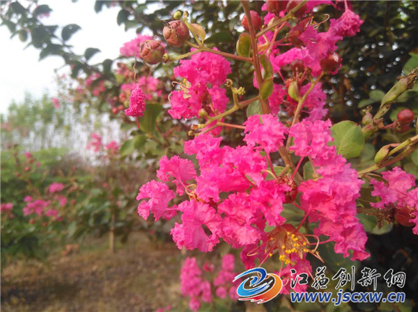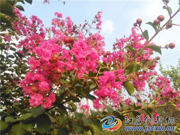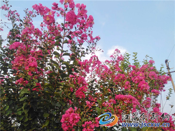 江苏创新网讯 受气温与超长梅雨的影响,紫薇树花往年7月中旬就开始盛开,今年虽然晚了一些时间,但最美的时光没有缺席,今年9月初以来,镇江宝堰镇前隍村的一百余亩紫薇花在初秋的阳光下竞相绽放,成片成片的紫薇树林里面姹紫嫣红,一朵朵紫薇花争奇斗艳,每当有人路过这里都要被这芬芳吐艳的树花所吸引,并驻足欣赏,游客纷纷赞不绝口,称还是被如此壮观的紫薇树花海洋震撼到了。