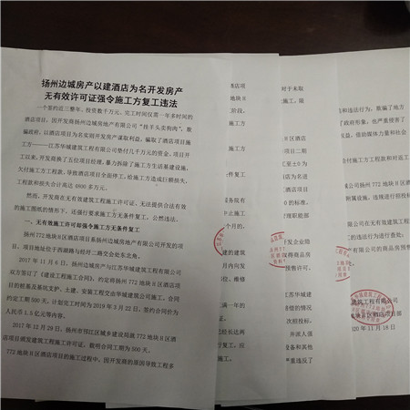 3.恳请有关部门对扬州边城房地产有限公司在无有效建筑工程施工许可证的情形下强令施工方无条件复工的违法行为进行查处;
