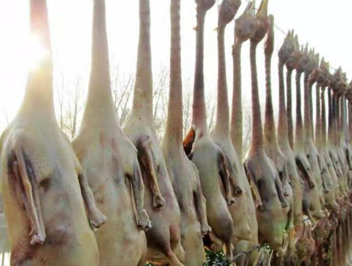 在邵伯古镇东北南渡村,有一户人家咸鹅真诱人。据称,每年要腌几百只,晾晒在河边,形成一道风景线。