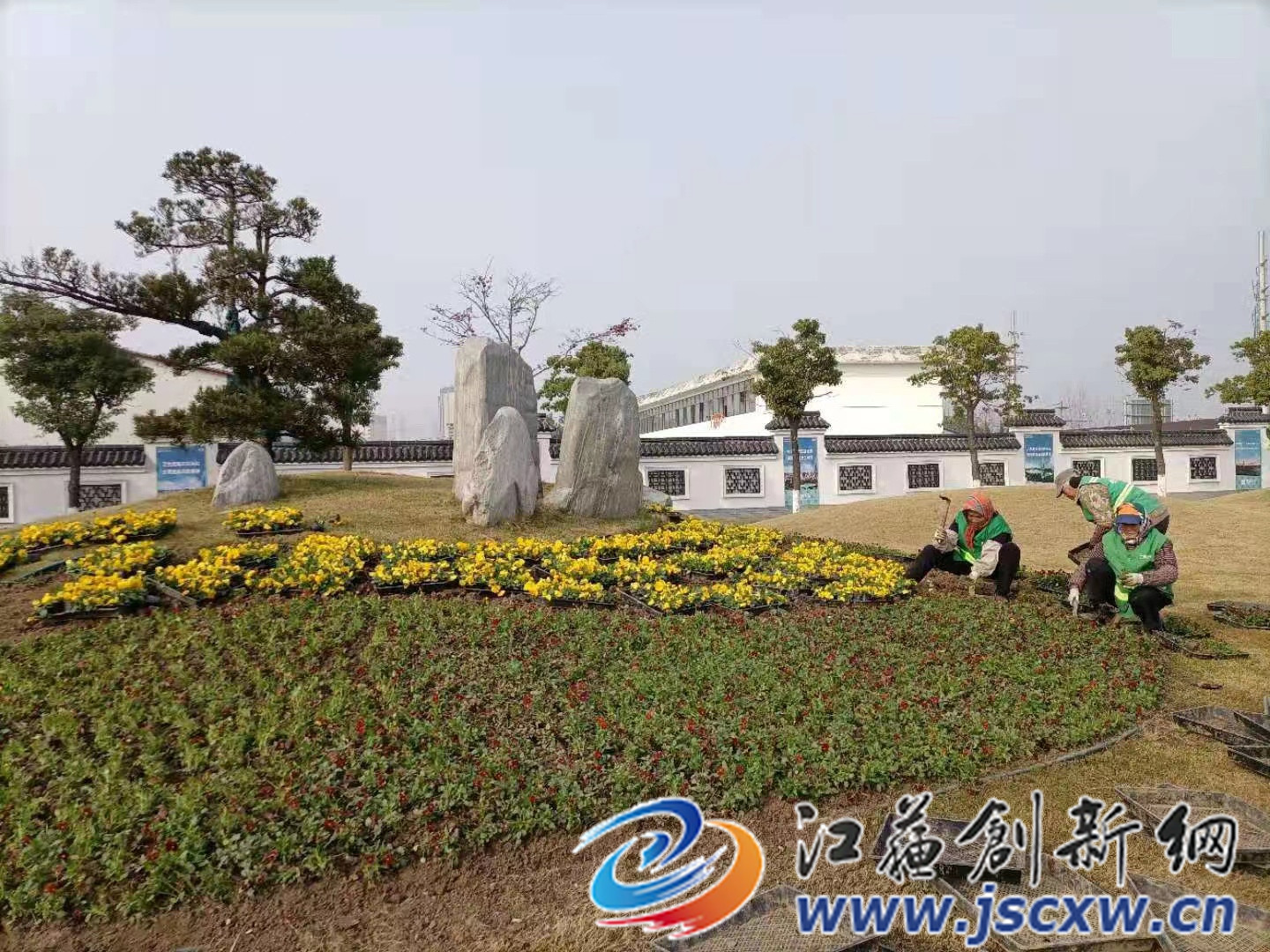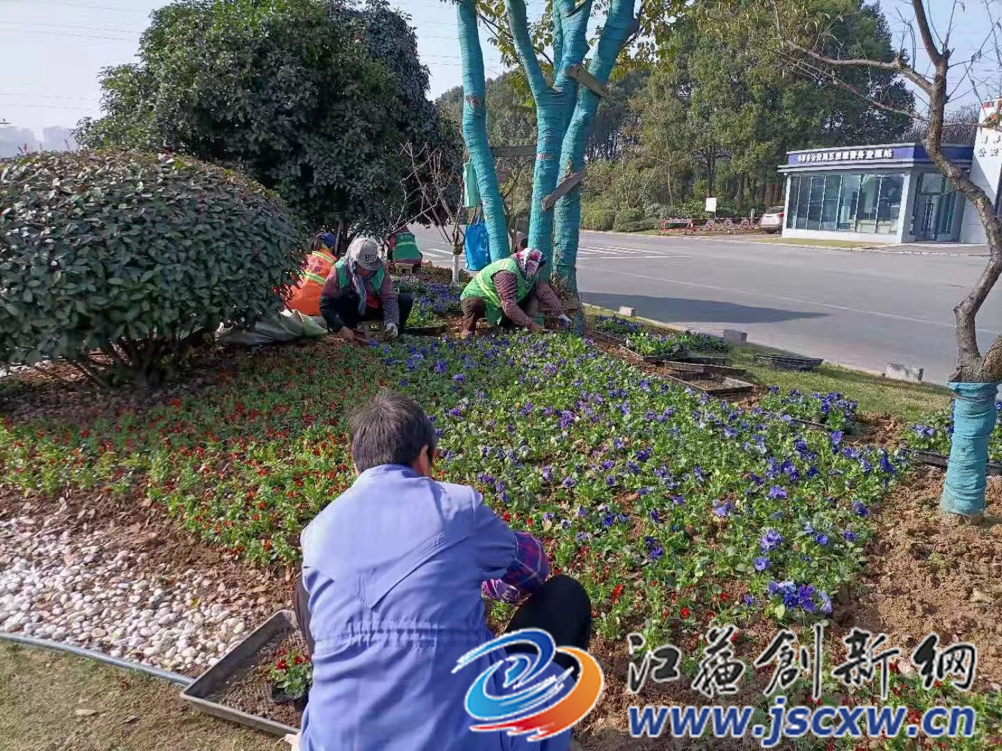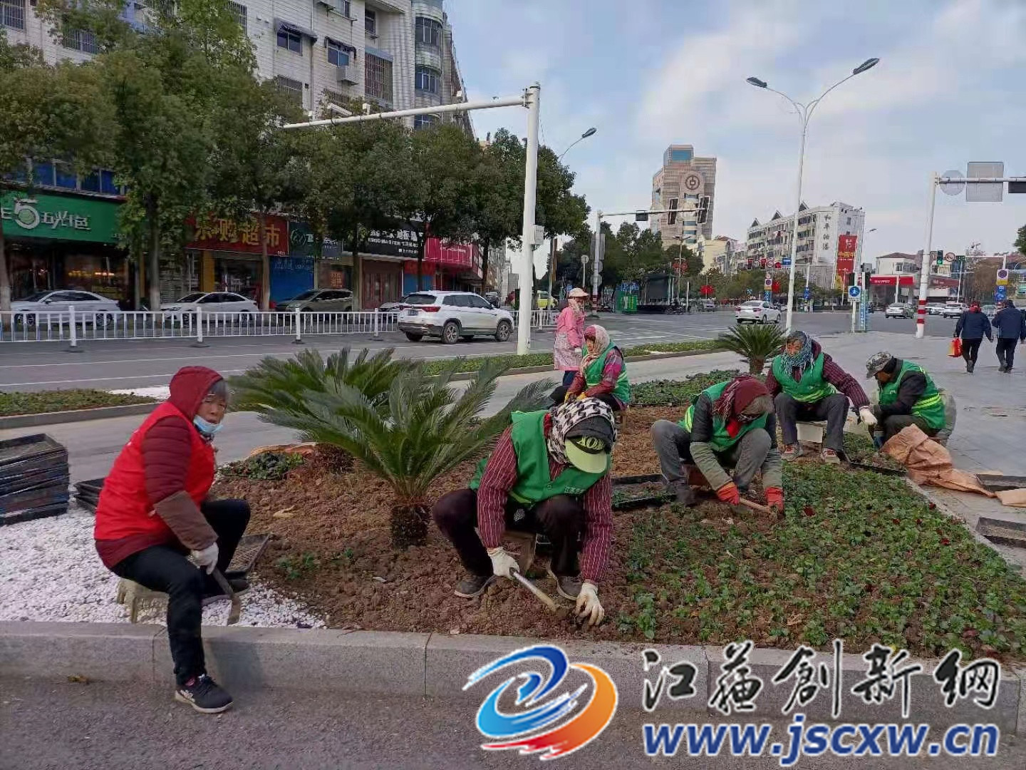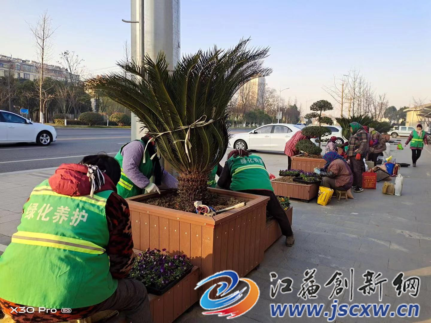 江苏创新网讯 为迎接元旦节日的到来,句容市城管局园林管理中心早早部署,组织园林工人对城区各公园、广场和重要节点进行草花更换工作。