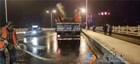 雪情即是命令。29日晚18时至21时,市环卫处紧急出动8辆作业车,100多名环卫工人采取人机结合的方式,对城区各主次干道、桥面、学校等重要路段进行清扫积雪和洒融雪剂作业,尽全力保证交通早高峰安全、畅通。截至29日21时已累计洒融雪剂8吨.据环卫处负责人介绍,市城管局环卫处已采取24小时值班制度,并组织各区域负责人检查扫雪除冰设备情况,做好维护保养,保证扫雪除冰“武器”能够“拿的出,打得响”。(图文/黄祖华)