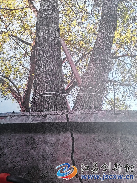 据受理这期案子的句容市人民法院白兔法庭高法官介绍,今年4月16日,接到句容市边城镇赵庄村村民曹东(化名)的诉求,称邻居家的树太大太粗了,已经导致自家的围墙出现裂缝,如不锯掉大树,说不定哪天围墙倒下来砸到人,已经很危险了,请求法院主持公道,解决这一危机等等。白兔法庭高法官与办案人员来到现场实际调查了解,经调查诉求理由基本属实,但关键是双方都各持一词,对方邻居老孟(化名)说是栽树在前,围墙在后,但围墙的曹东也坚决表示围墙在先,调解再三,因双方互不相让,僵持不下都不肯退步,当事法官只好择日再来。