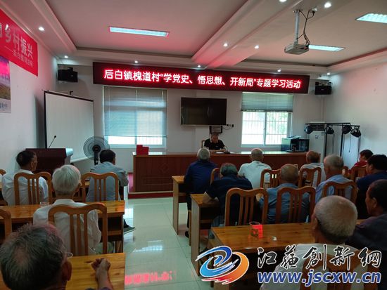 江苏创新网讯(曹盼) 6月29日上午,后白镇槐道村党总支组织全体党员在村党员教育室、和新完善建成的党建文化长廊,集中开展党史学习教育,创新举措学党史,忆村史,取得了良好效果。