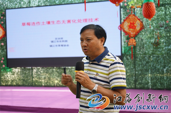 江苏创新网讯(毛妮妮 毕庆元 窦汉星) 7月7日,为了更好的落实“我为群众办实事”实践活动,镇江市农科院、句容市农业农村局、镇江市草莓协会等共同把草莓种植培训课堂搬到农场,在句容市白兔镇永丰农场举办了草莓专场培训会。来自句容市70多名草莓种植大户参加了现场培训。