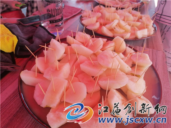 来自南京玄武区的王女士说,她是第二次来了,虽然天气炎热,但她从去年尝过之后就对这富硒梨念念不忘,所以不顾炎热也要来一饱口福,她与家人朋友相约来到这里,现场品尝了有机富硒蜜梨。“好甜好润,真的很好吃!”王女士说。