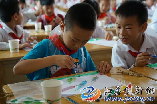 在句容市黄梅中心小学的活动现场,记者看见孩子们认真听讲,授课后,饶有兴趣的做着手工,科普老师们耐心的给孩子们示范手工制作方法。