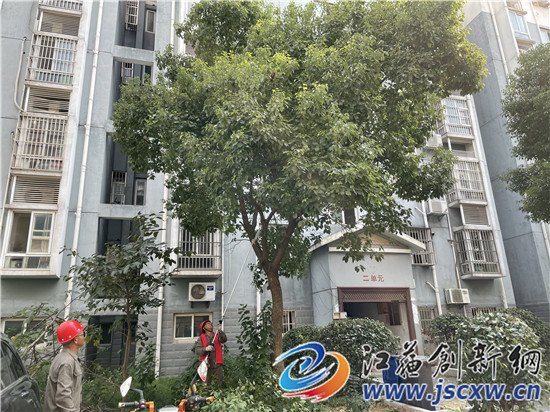 中凌社区河滨佳园是一个有着十几年历史的老旧小区,当年小区种下的不少绿化苗木,现在都已经长成了参天大树。尤其是枝繁叶茂的香樟树,长得有二三层楼房那么高,不少树枝已经严重阻挡了住户的阳光和通风,甚至伸进了住户家里,尤其是冬夏季节,导致小区不少住户的房间湿气很重。但修剪这些树枝属于高空、高危作业,没有专业的设备和人员,普通的物业工作人员根本不敢贸然操作。