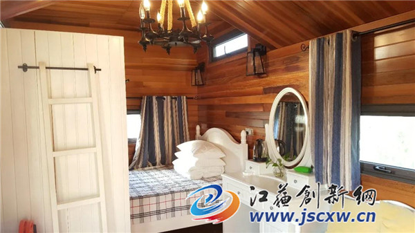 每栋小木屋的房型、风格都不相同,美式田园风、地中海度假风……相同的是都能感受到窗外田野里浓浓的自然景观。