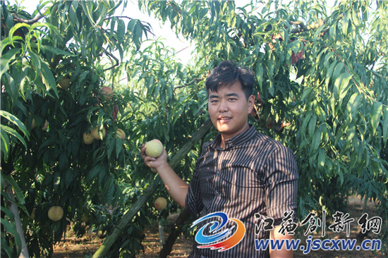 江苏创新网讯 9月30日,记者来到位于镇江丹徒荣炳胜利村硕德生态农业园的西南角刘家桃园。刚进入生态农业园大门后,诱人的桃子香气就扑鼻而来,一颗颗红扑扑的桃子挂在枝头。