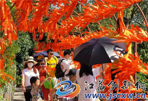 今年“十一”黄金周,晴朗的天气为茅山风景区赚足了人气,“五福”送福、汉服巡游、古筝茶艺表演等系列文旅特色活动在景区的各个景点轮番上阵,给广大游客带来不一样的视觉盛宴和浓浓的文化体验。假日期间,游客手拿小红旗、祈福带,在九霄万福宫观看古筝、茶艺表演,品味深厚的中国传统文化;在元符万宁宫摸福字、集赞领福,将满满的福气带回家;在游客中心,众人手拉国旗,共同书写“祖国繁荣昌盛”。
