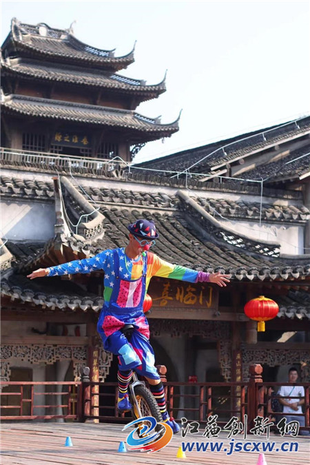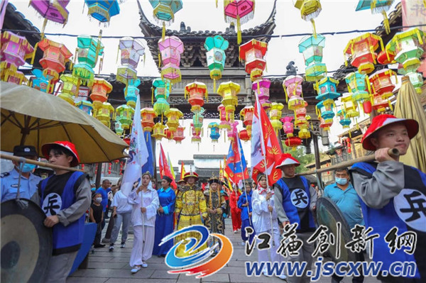 在句容市宝华山风景区,明清古街舞安塞腰鼓、“秦淮之源”唱激情山歌等活动轮番上演,营造出了喜庆热闹的节日氛围,吸引了大批的游客前来游玩。走进千华古村,映入眼帘的就是热闹繁华的非遗市井文化一条街,涵盖民俗杂技戏法展演、传统美食制作售卖等;展馆、醉巷、佛阁、绣里街、绣外街等景点,茶楼、粮油铺、酒坊、豆腐坊、首饰铺、灯笼铺、中药铺等明清建筑,错落有致地分布其中,完整真实地展现了明清时代黎民百姓的生活状况,市井民俗氛围格外浓烈;飞檐下,灯笼串串,绕过酒坊门口的八仙桌,穿过悬挂莲花灯的长廊,在水榭里就能晀望到秦淮水阁,清泉汩汩自山上往下流淌,途经大大小小的山石,飞溅起迷蒙的水雾,勾画出人们心目中的“水韵江南”。