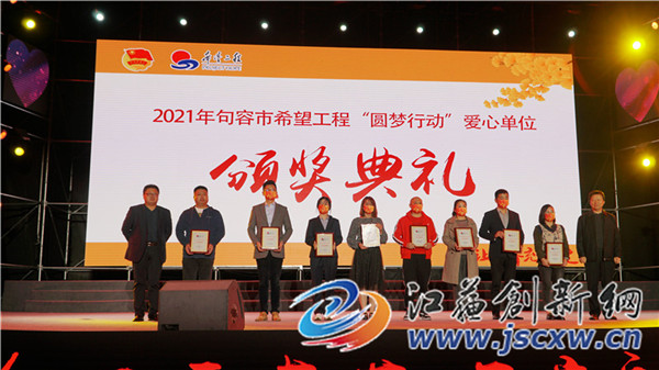 为了感谢各大爱心人士和爱心企业的支持,慈善晚会也为各大爱心企业和爱心人士颁发了爱心奖牌,举行了“2021年民间力量助农、助学代表颁奖仪式”、“2021年句容市希望工程‘圆梦行动’爱心单位颁奖仪式”,肯定各大爱心企业为公益所作出的付出,鼓励更多的人一起关注公益事业并推动公益事业的发展。另外,晚会还举行了“同心红志愿者联盟授旗仪式”,“‘阳光学子’培养计划”,“李新夫妇”‘希贤’奖学金计划。