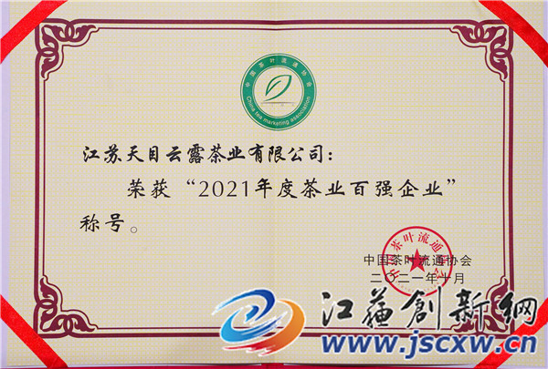 江苏天目云露茶业有限公司是江苏知名茶企。天目云露茶业有限公司董事长、“中国制茶大师”葛联敏说:“‘高端白茶,送天目云露’不仅是我们的广告语,更是我们追求高端茶叶品质、打造高端品牌的终极目标。天目云露一直坚持‘技术是核心,质量是生命,品牌是关键’的发展理念,此次公司荣获2021年度茶业百强企业称号,我们将再接再历,不断进取,不忘初心, 砥砺前行……”。