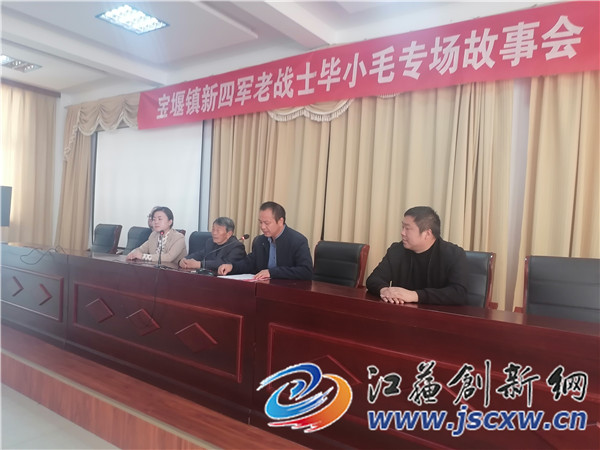镇江宝堰实验小学校长蔡金培介绍说,今年8月24日,新四军老战士、抗美援朝老兵毕小毛,也是镇江宝堰老少故事团的故事爷爷,不幸因病去世,享年95岁。毕小毛家住宝堰镇前隍村塘甲自然村,他生前参加过抗日战争、解放战争和抗美援朝战争,一生富有传奇色彩,毕小毛在2003年在老少故事团刚成立的时候就与故事团成员一起讲故事,宝堰老少故事团主要有宝堰镇关工委、宝堰中学关工委、宝堰实验小学关工委和健在的新四军老战士和抗美援朝老兵等组成,毕小毛每年都随故事团到处巡回讲红色故事,因为他讲的都是自己真实的经历,所以,故事团所到之处是万人空巷,一个个聚精会神,非常震撼,在没有听毕小毛讲战斗故事的时候,大家都是从电影或电视和小人书(连环画)中了解这些非常了不起的英雄,自从听了毕小毛的亲身经历打仗的故事后,感叹不己,原来英雄就在身边。