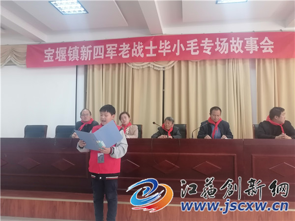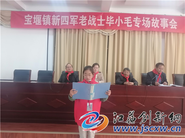 江苏创新网讯 “毕小毛爷爷12岁就成了孤儿,为了穷人翻身解放,15岁的他谎报年龄参加了新四军,他不仅参加了抗日战争,后来也参加了解放战争和抗美援朝战争,成了共和国的功臣,成了我们宝堰人的大英雄,我长大了也要象毕小毛爷爷那样,建设祖国报效祖国,成为一个对社会对家乡的有用之人!”这是10月27日下午,镇江市丹徒区宝堰实验小学5年级学生华姚萱对记者讲的一番话,她也是今天这场故事会第一个讲老英雄毕小毛的故事的小故事员。