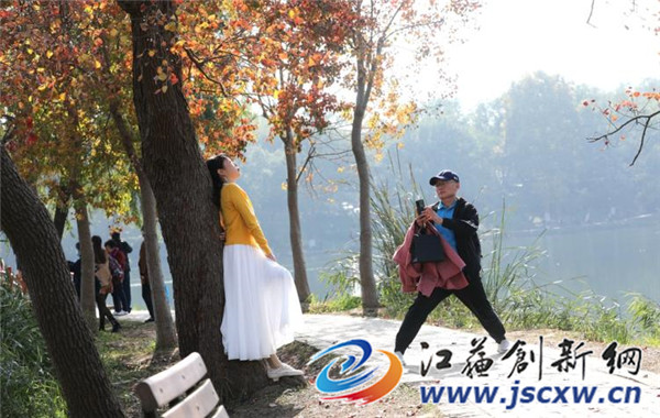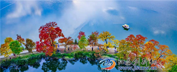 江苏创新网讯 深秋的南京色彩斑斓,中山植物园南园前湖畔的“月牙堤 ”仿佛“秋姑娘”打翻了调色盘,呈现出绝美的秋色,令人神往!