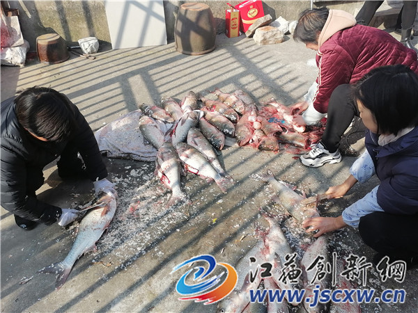 村民姚帮青讲,他们村有好几个生产队仍然延续着当年生产收的分鱼方式,就是原生产队的几十户人口的鱼塘不变,不管是谁承包,都要交足这几十户的人口鱼,如果承包户的鱼养的不好,鱼塘里面养的鱼不够,承包户就要到市场上买来人口鱼,如果鱼塘养的好大丰收了,除去分去的人口鱼,剩下的就是承包户的辛苦钱。村民们都表示,这样很好的,每到年底都有很多新鲜的大鱼吃,吃不完的可以分给邻村的亲戚家或将部分腌制起来今冬明春吃,咸鱼烧淡肉是一道非常美味的农家菜。(图文/李国平)