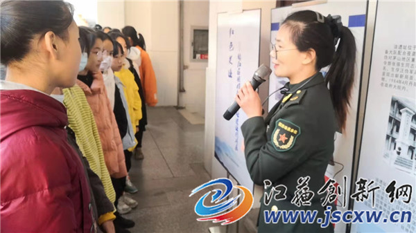 重读文化镇江”主题通过实物展示和展板展览的形式举行红色图片展览活动,纪念馆讲解员围绕《红色足迹——镇江区域内抗战遗址遗迹图片展》这一主题,结合展板内容对学生展开讲解,并现场采访互动,交流学习心得。