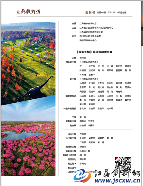 江苏创新网讯 历经半年的蕴酿筹备和精心采编,由江苏省农业农村厅主管,江苏省农业宣传教育与文化体育中心和江苏省休闲旅游农业协会主办的《苏韵乡情》杂志创刊号终于在2021年年底杀青、与大家见面了。