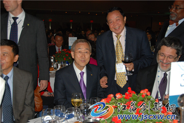 公司董事长王祥林与潘基文先生在宴会上亲切交流
