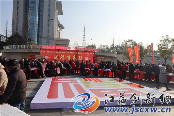 江苏创新网讯 1月13日上午,由句容市文体广电和旅游局主办,句容市图书馆承办的“文化村镇行”义务写春联、送祝福惠民活动在福地广场顺利举行,活动邀请了句容市文联的书法家们即席挥毫,吸引了不少市民早早前来“抢”名家所书的新春祝福。