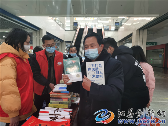 江苏创新网讯 1月21日下午,句容市客运站热闹非凡,一批优秀图书、期刊、书签和“福”字送到准备返乡过年的在句务工人员和广大旅客手中。这是市图书馆等部门单位联合推出的“带一本好书回家过年”活动,让全民阅读春风吹暖过年回家路。