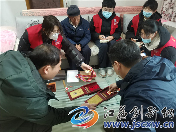 二、寻访老党员,忆峥嵘岁月 老党员——孙敦玉(1930—),实践团师生聆听老党员的革命故事,从淮海战役、解放舟山、抗美援朝,到参加新中国的建设,让实践师生们在历史长河中追忆初心。一枚枚闪亮的勋章,一张张泛黄的奖状,无不述说着中国共产党在为追求民族独立、人民解放和国家富强而奋不顾身、流血牺牲。此次实践活动可帮助当代青年大学生增强荣辱观念,帮助其筑牢信仰之基,补足精神之钙。