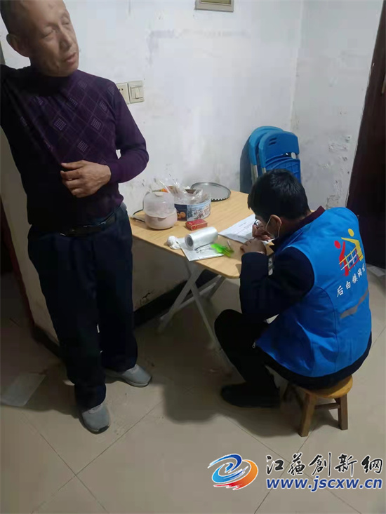 为高效、精准完成核酸检测工作,他带领村里党员志愿者、网格员、村民小组长等一起进村入户,开展“敲门行动”。仅用三天时间,就把全村区域内的居住村民信息采集完备。回到村委会,他还查漏补缺,一个一个拨打排查电话,细致做好记录,坚决做到“不落一户,不漏一人”。包括近期从句容市以外回村的人员均打电话核实详细地址,对特殊人员配合上门做核酸检测,严格隔离要求,落实管控措施。