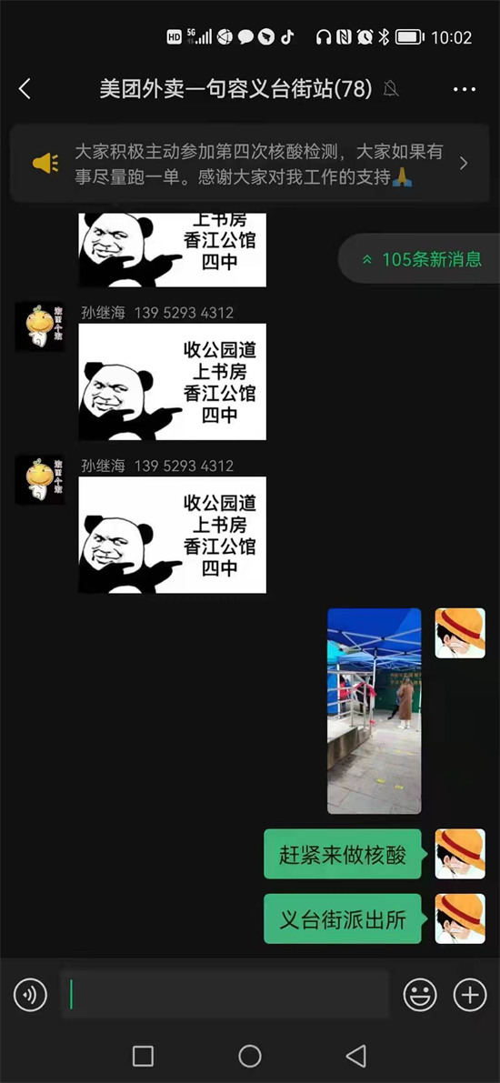 义台街社区想群众之所想,社区书记樊海燕特意找到外卖骑手们,告诉他们到五彩城警务站检测点来做核酸,同时避开人多的时间,并让他们在骑手群中转发,起到了很好的效果,不用排队,来了就做,做了就走。