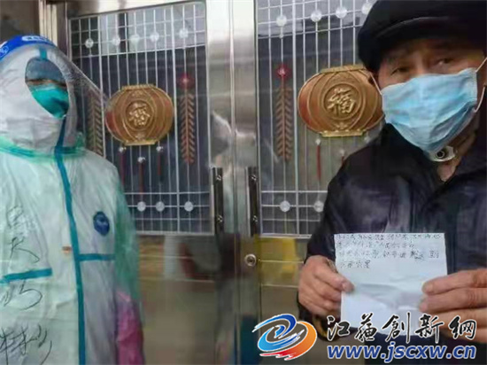 江苏创新网讯 3月23日上午,当镇江市丹徒区上党卫生院的杨霞等几个医护人员到上党镇封控区陶巷村来进行核酸检测的时候,其中一户老年村民突然从口袋里面掏出一张纸,纸条上的内容表达了对上党卫生院的医护人员感激。